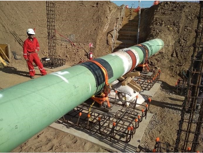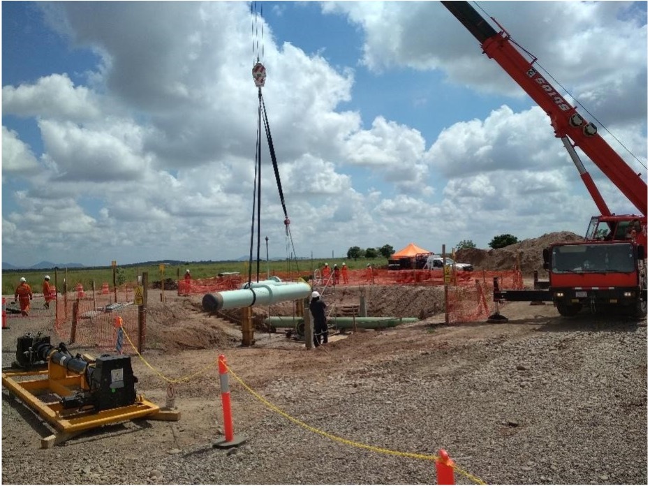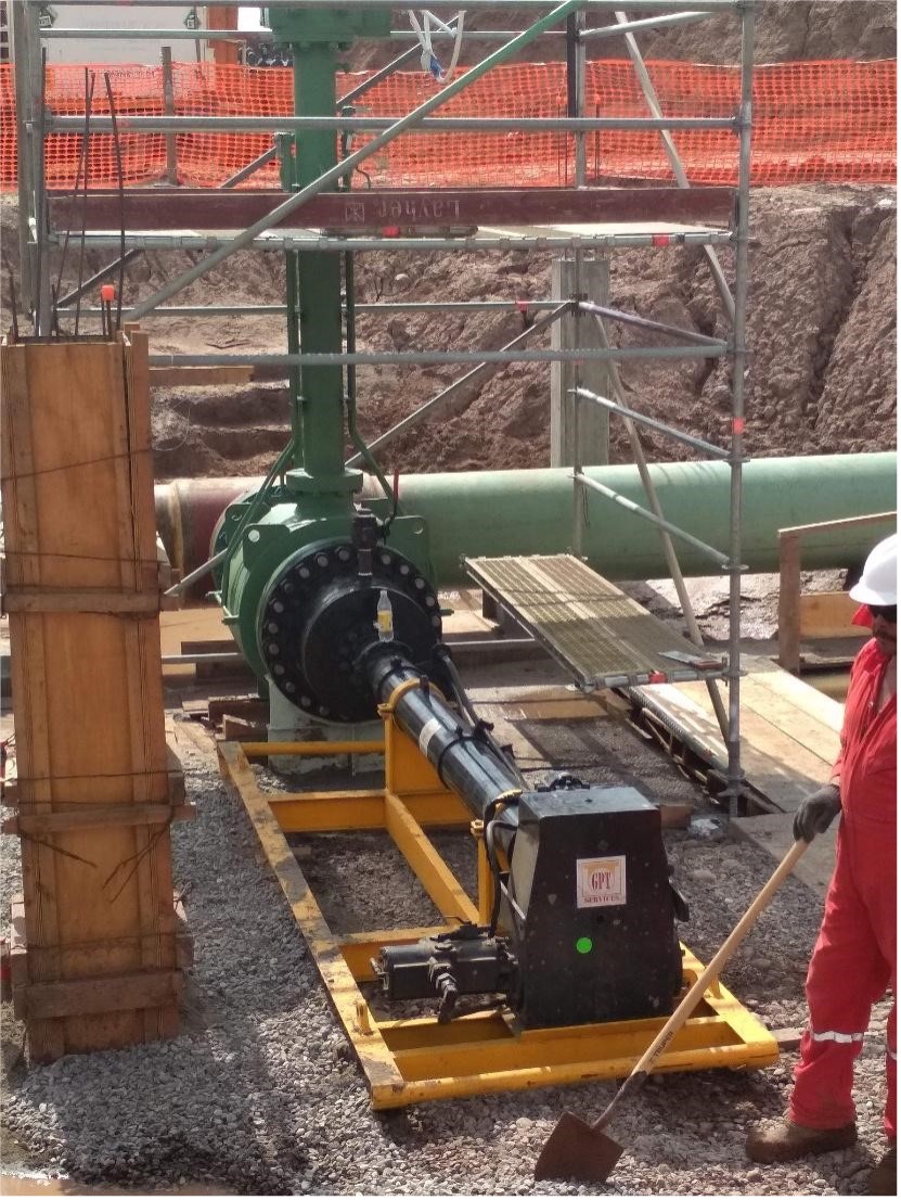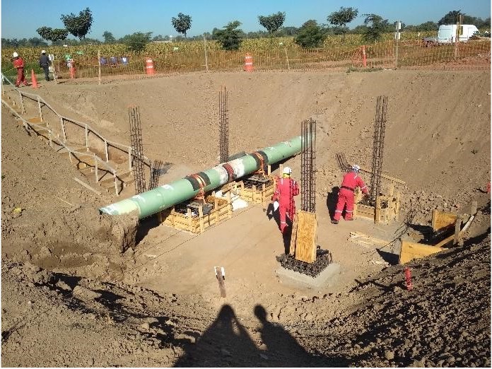 Interconexión de tubería de acero al carbón de 24”Ø a tubería de acero al carbón de 36”Ø para la interconexión de gas natural sobre el gasoducto, colocación de Tee bipartida con soldadura en caliente para el posterior barreno sobre línea viva de gas natural e instalación de válvula de seccionamiento de 25”Ø.